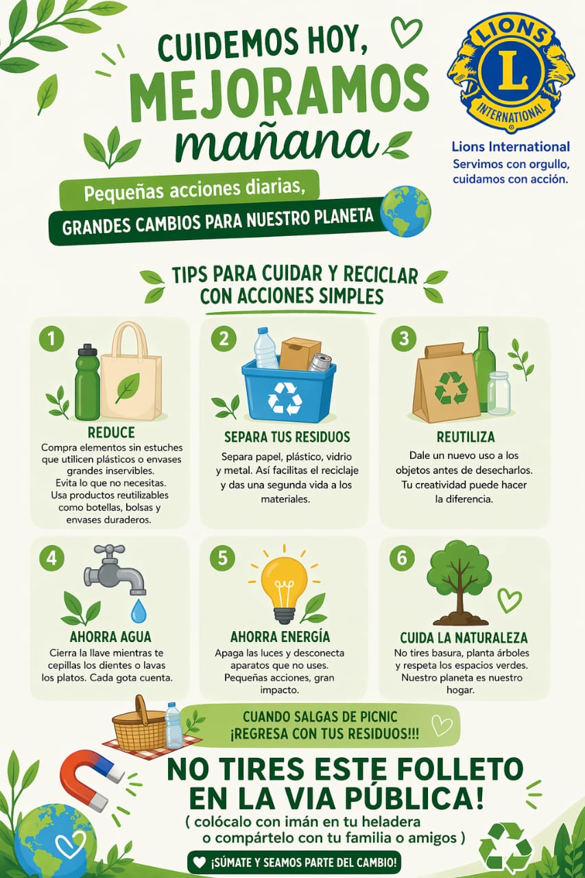 Los Leones trabajamos comprometidos con el cuidado del Medio Ambiente, promoviendo acciones que generan un impacto positivo en nuestras comunidades!