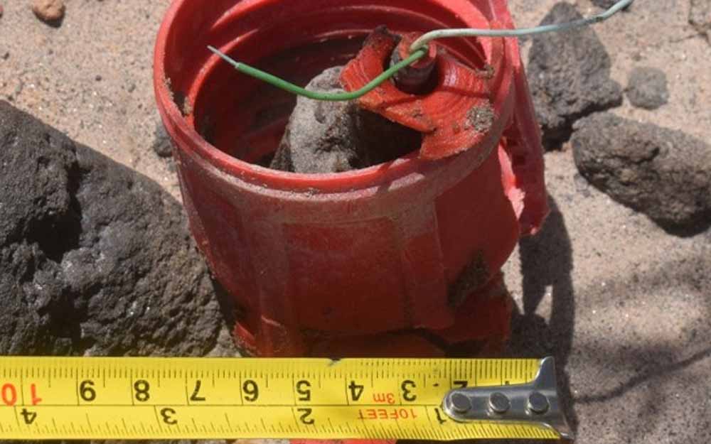 Tras un ascenso de aproximadamente 20 kilómetros en dirección este, los policías realizaron la extracción de dos cargas de propulsión sísmica de forma cilíndrica y un detonador eléctrico; todos en mal estado de conservación, que un hombre habría encontrado mientras recorría el lugar.