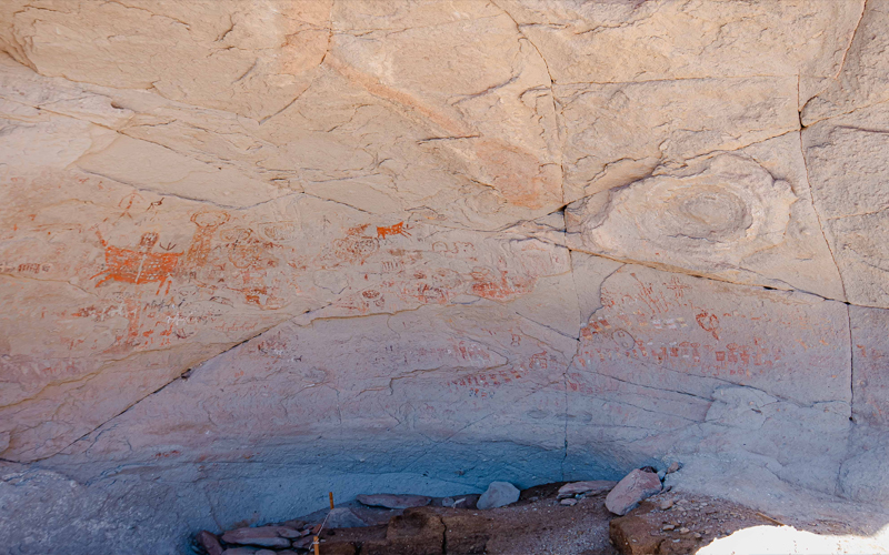 En capas superiores se han descubierto mechones de cabello humano, sandalias de cuero, un sonajero rústico, cerámica, así como pinturas y grabados rupestres que muestran múltiples estilos superpuestos a lo largo del tiempo.